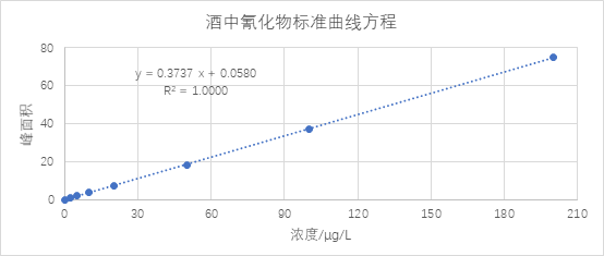 表1 酒中氰化物标准曲线数据表