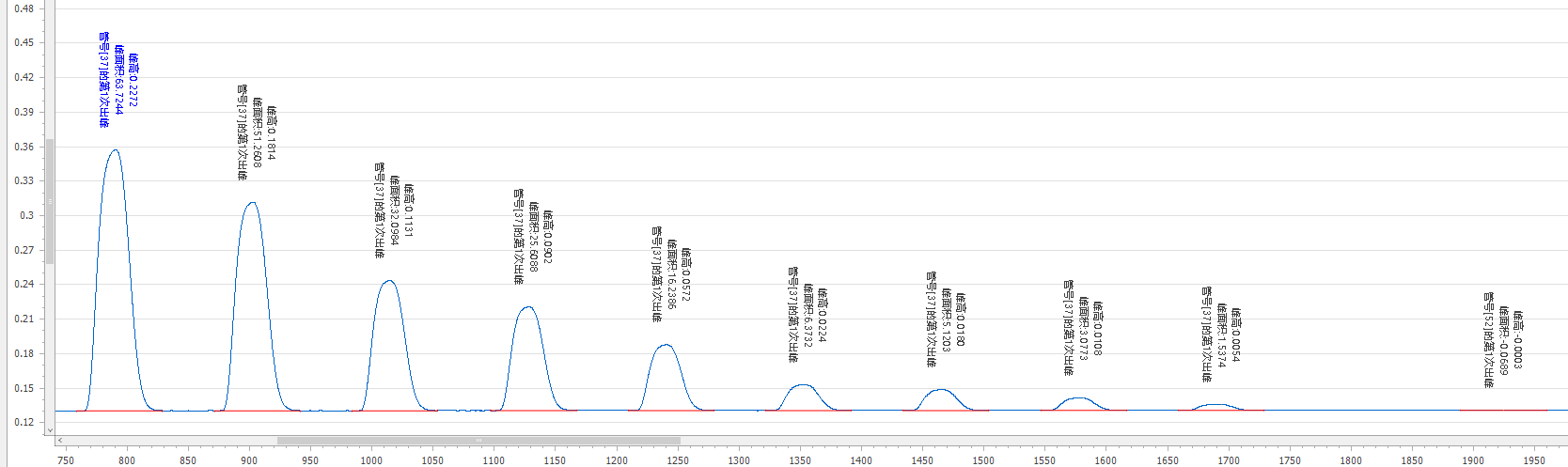 按照步骤3样品前处理进行试样的提取,将样品提取液连续测定7次,硝酸盐定量重复性测定结果见表4,硝酸盐重复性的分析峰型图见图5,亚硝酸盐定量重复性测定结果见表5,亚硝酸盐重复性的分析峰型图见图6。